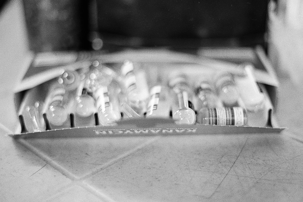 L’injection de kanamycine est vraiment douloureuse … Nous gardons les flacons pour en faire des petits anges qui décoreront notre arbre de Noël.